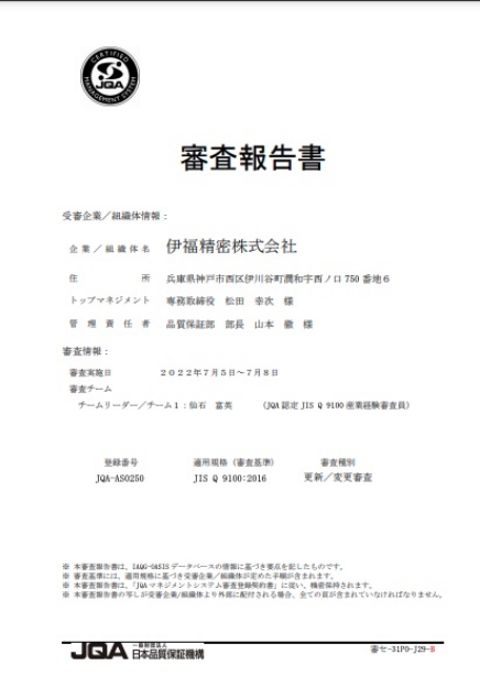 この品質監査承認機関にて弊社の『金属3Dプリンターを用いたマイクロガスタービン用部品の試作製造』の審査・認定を取得する事ができました。